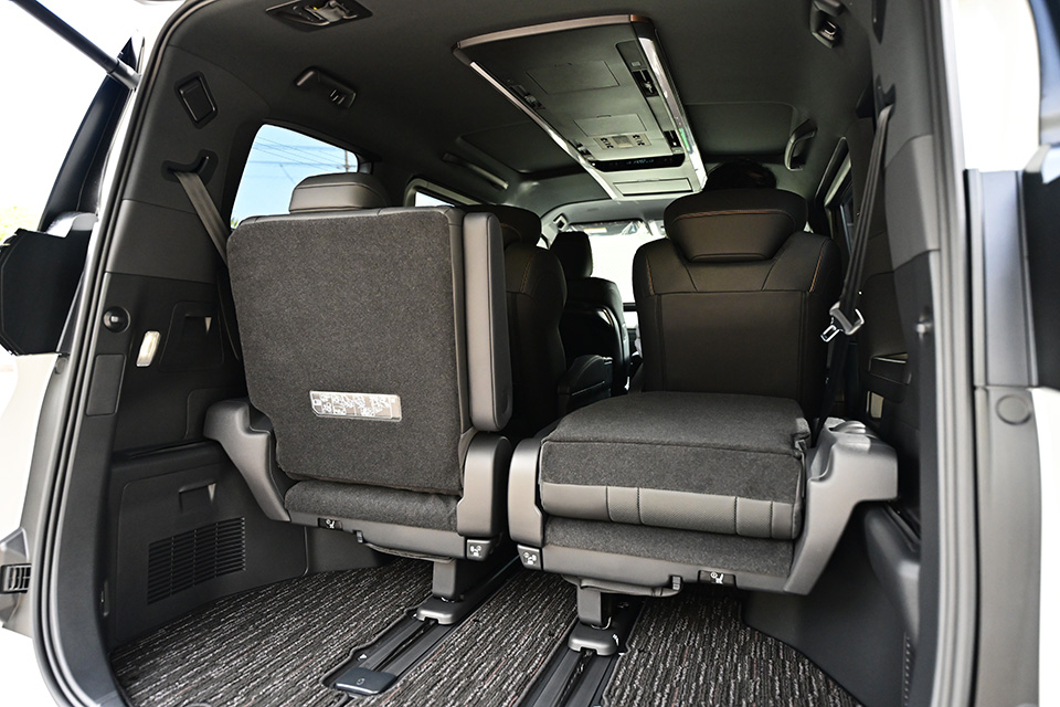 広々としたキャビンは三列すべてに余裕を持たせ、長距離移動でも疲れを感じさせません。特に二列目にはエグゼクティブラウンジシートが用意され、オットマンや電動リクライニング機能によってファーストクラス級の寛ぎを提供します!