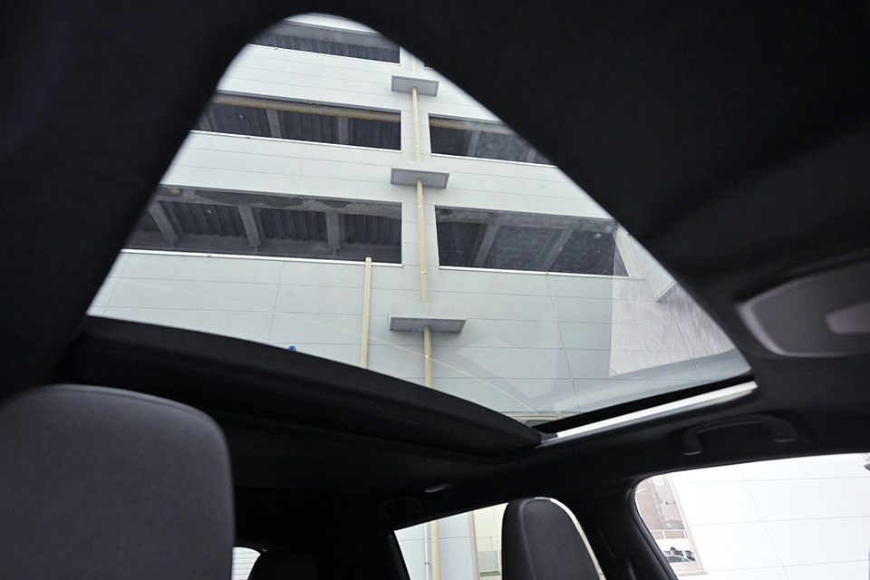 ガラスルーフはサンシェード付きで、明るさと快適さを両立。