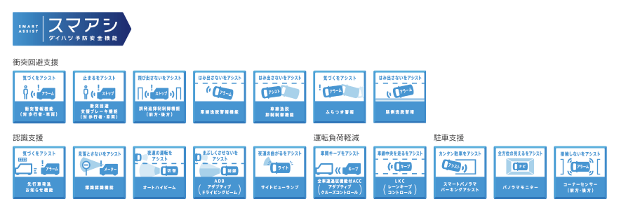 ムーヴには、ダイハツ独自の予防安全技術「スマートアシスト」が搭載されています。前方の車両や歩行者を検知し、衝突の危険がある場合には自動でブレーキを作動。誤発進抑制や車線逸脱警報など、多彩な機能が日々の運転をサポートします。